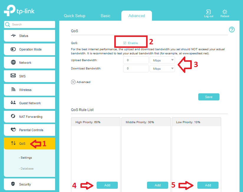 Zdravím chtěl bych nastavit omezení na archer 5 - Bandwidth Control , jak nastavit pro bezproblémový chod, a zároveň limit třeba 10 Mbps - 10240 kbps . Abych upřesnil, chci omezit internet pro dceru, zbytek abych měl já protože hraji na počítači. Jak to mám přesně nastavit Rozsah portů nastavit třeba 1 a 5 třeba ? díky za rady