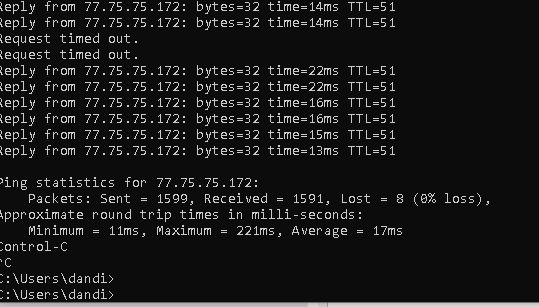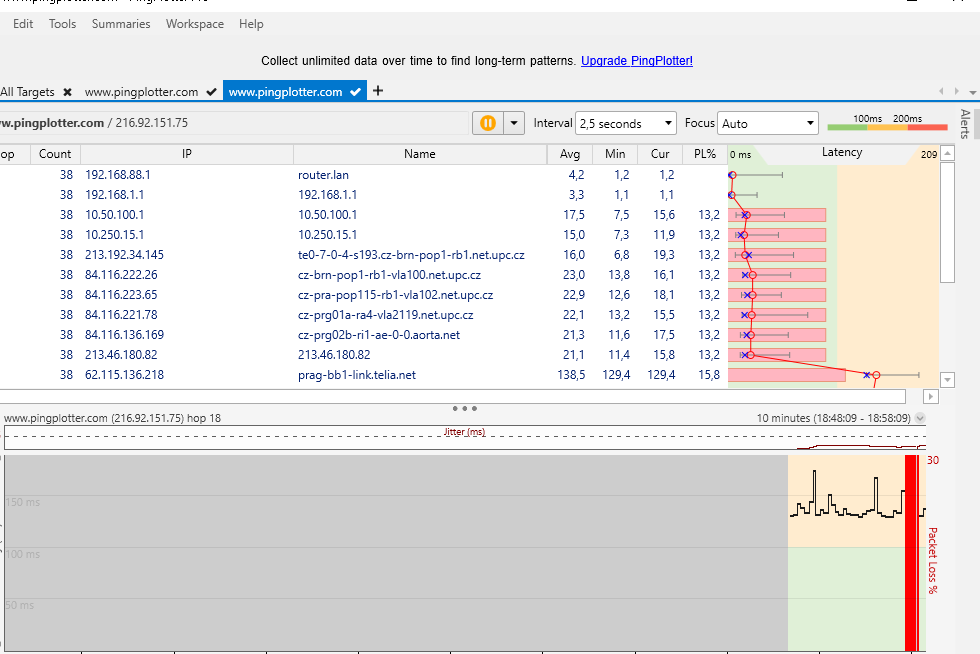 Výpadek tam ale nikde nevidím. Ztráta dvou paketů z 10 není žádný výpadek.