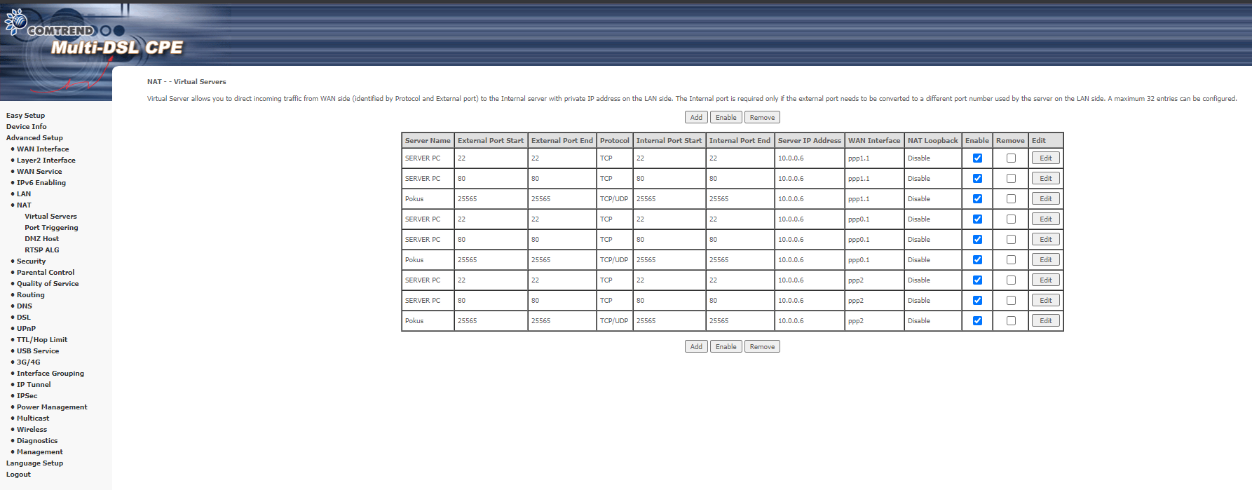 Router, Comtrend VR3031-EUSB – port forwarding