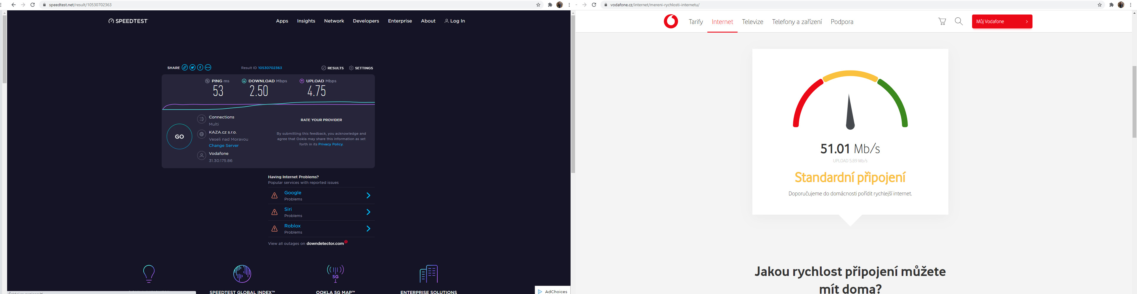 Tady jsou screeny.. Testy jsem dělal hned po sobě.. ve Vodafone mi neporadili. Tam prý vidí vše OK