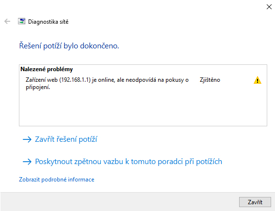 PS: když se chci připojit do routeru na 192.168.1.1 tak to napíše, že web není dostupný.. když dám spustit diagnostiku sítě systému windows tak to napíše toto