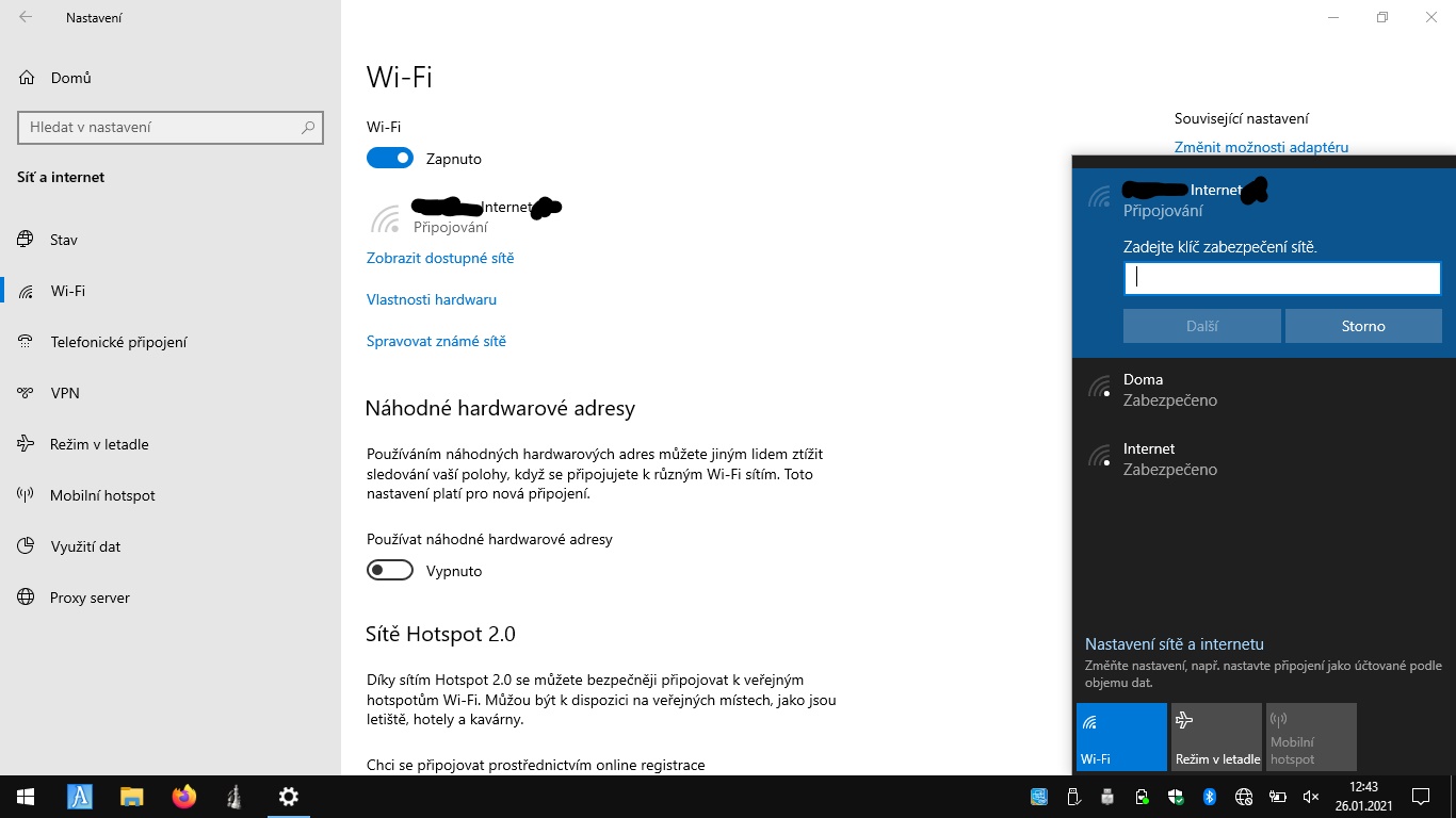Zkoušel jsem si udělat hotspot na mobilu a k tomu se notebook připojí. Také jsem zkoušel se připojit na jinou Wi-Fi a to také funguje. Jen na tu jednu konkrétní síť se to nechce připojit.