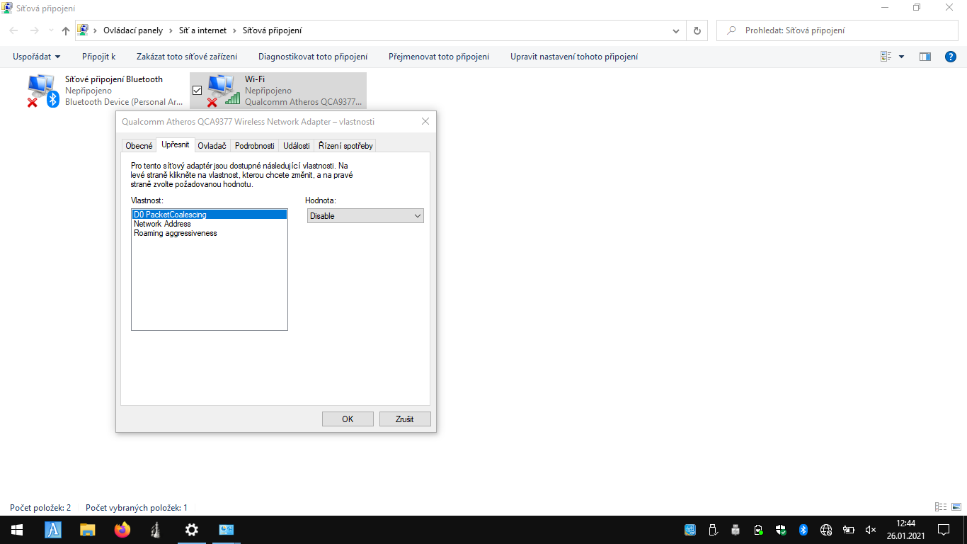 Chyba není v routeru protože se k Wi-Fi mohu připojit přes mobil nebo další notebook, dokonce i připojení u televize funguje bez problémů.