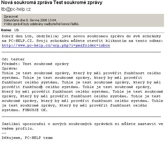 Ukázka soukromé zprávy: Díky a hezký den všem