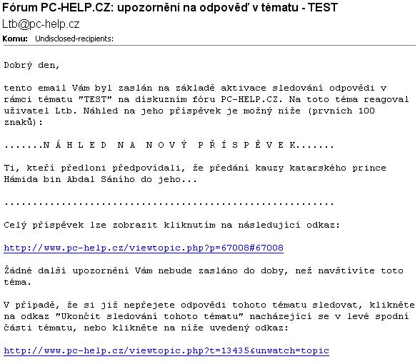 Na základě podnětu ze strany uživatele alias75 došlo k přepracování emailové zprávy, která je zasílána v případě, kdy uživatel aktivuje "sledování odpovědi". Nová podoba zprávy (kromě toho, že by měla být trochu více česky