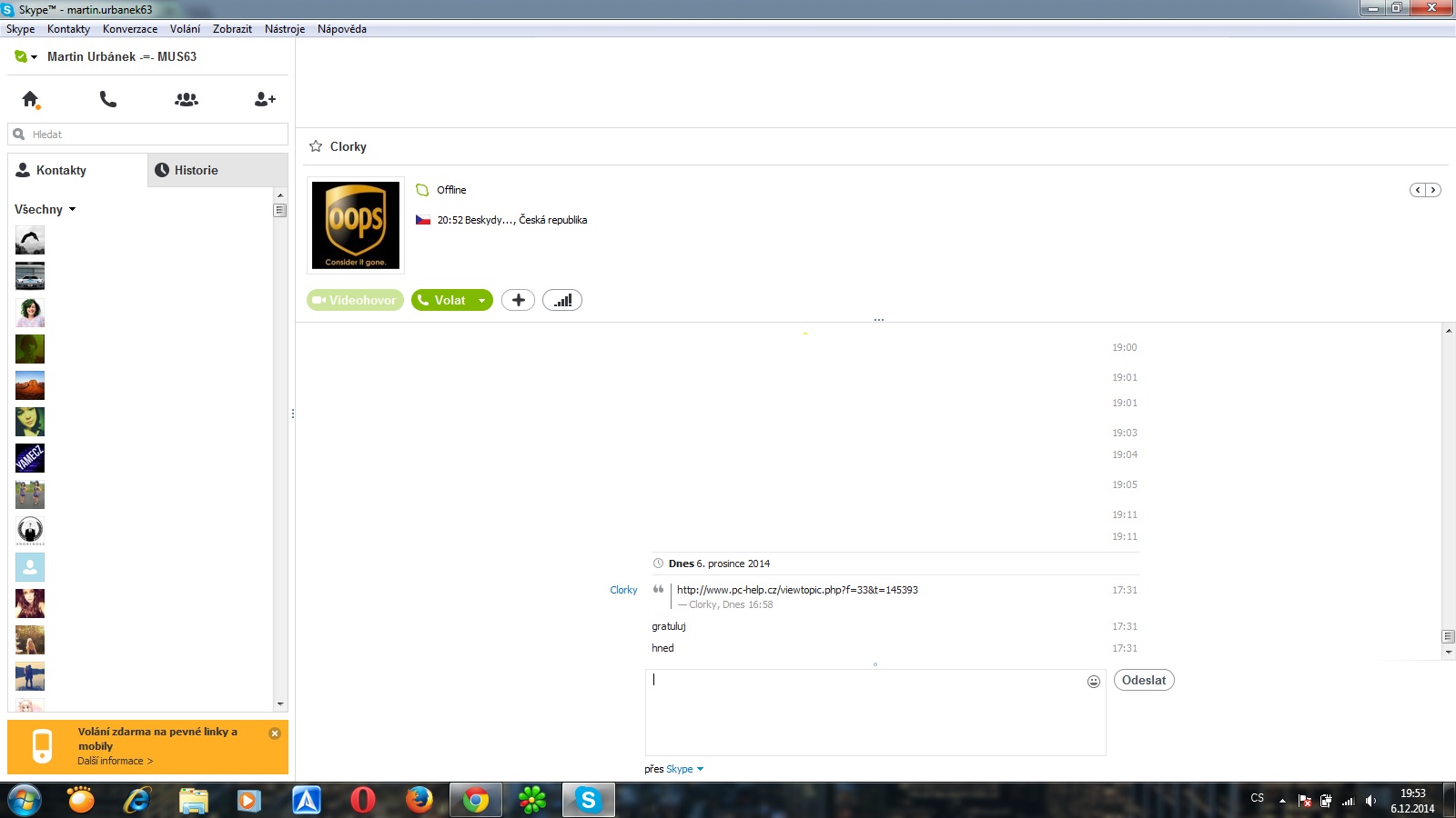 No tak tedy samozřejmě gratuluji!Zpráva ze Skypu: