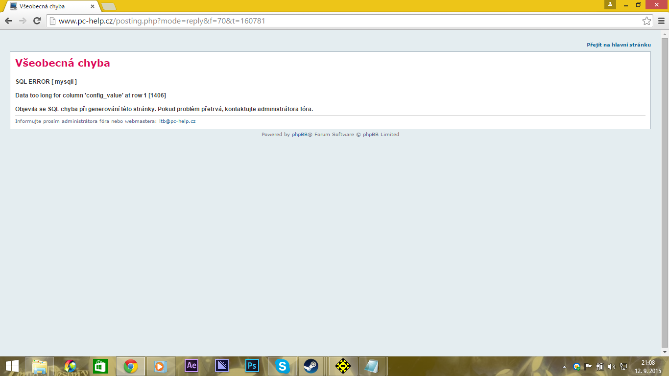 Je divne, ze jsi jedina, komu se problem deje...myslis si, ze se chyba zobrazuje jen v 1 tematu? A vlozi se do fora prispevek, co zrovna odesilas nebo ne?
