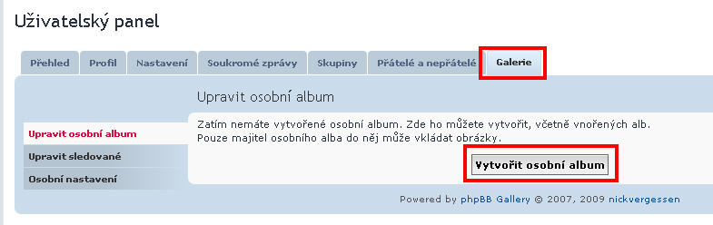 Primárním využitím galerie pro naše uživatele je možnost vložení fotografií svého PC a jeho komponent do svého profilu...nicméně fantazii se meze nekladou... Každý z uživatelů má možnost vytvořit si svoje osobní album (a v něm až 10 vnořených alb) a sem nahrát až 100 obrázků... Osobní album lze vytvořit ze svého profilu - na kartě Galerie: