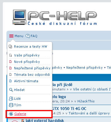 Do galerie se dostanete přes Menu v hlavičce fóra....Menu -> Galerie