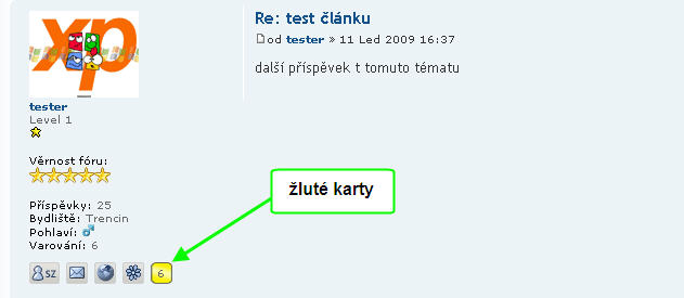 - udělení žluté karty (varování) uživateli, který nějakým způsobem porušuje pravidla fóra