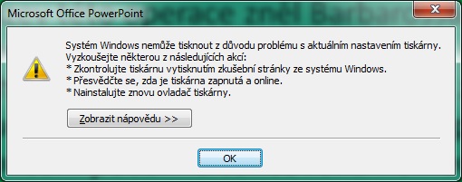 mám problém s Officy 2007, nejde mi v nich nic vytisknout, ať už ve Wordu, Excelu či Powerpointu. Jakmile dám ale tisk z prohlížeče, tiskárna normálně tiskne. Systém mám Win 7 64 bit Ultimate.