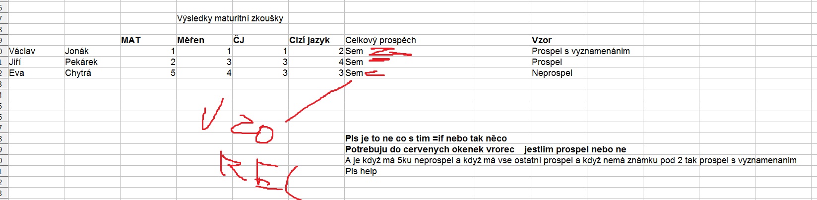 =IF(MAX(A1:D1)=2;"prospěl s vyznamenáním";IF(COUNTIF(A1:D1;5)>=1;"neprospěl";"prospěl"))Is it a bug or a feature?