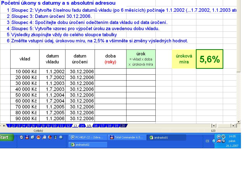 díky,ale já to potřebuju početně v excelu jak se odečítají buňky v příloze je celý zadání, je to hrůza a už je tak málo časoMyloš píše:Na první otázku odpověď neznám (excel téměř nepoužívám, vzorcům nerozumím).