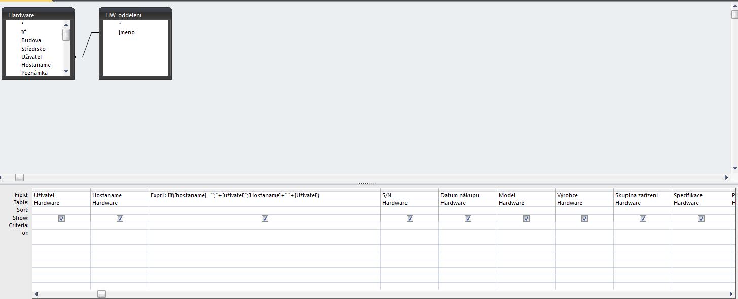 Sloučení: Iif([hostaname]="";"+[uživatel]";Iif([Hostaname]>0;[Hostaname]+" "+[Uživatel])