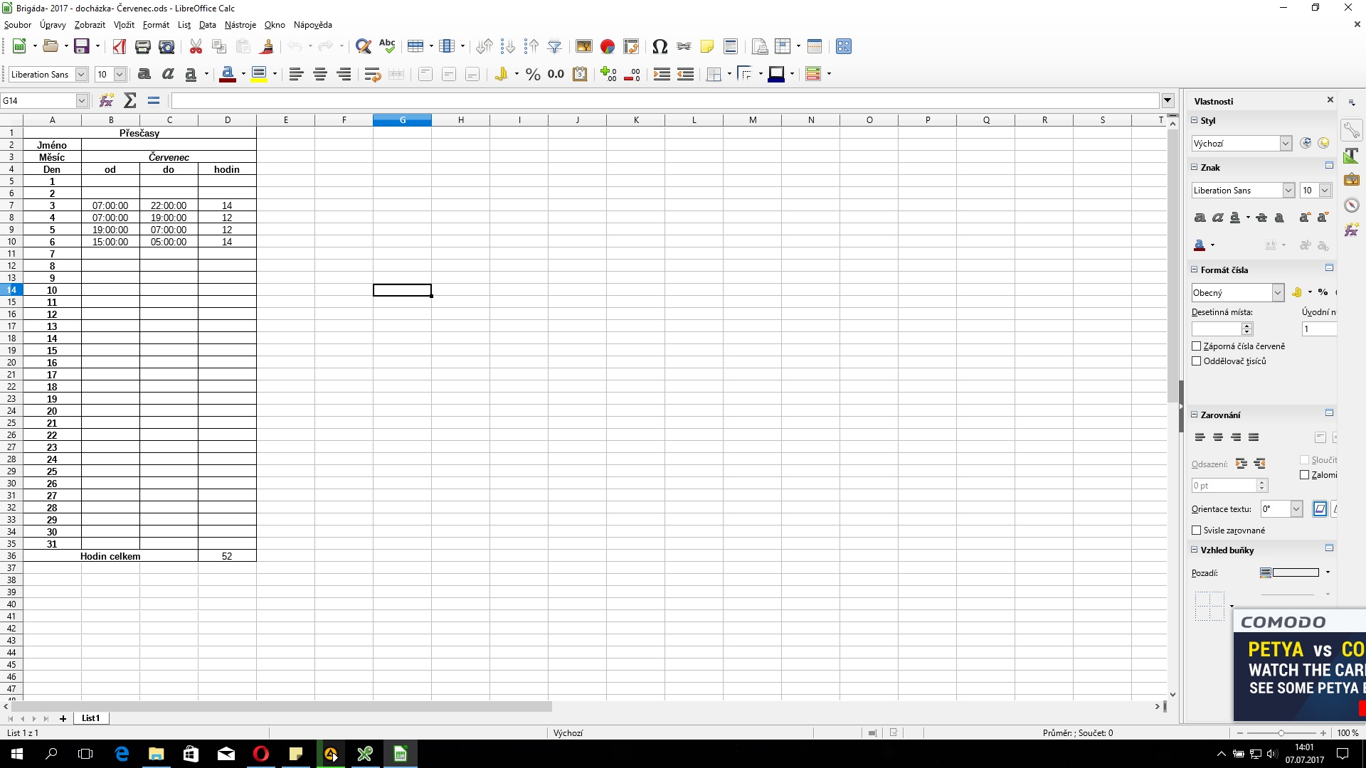 Re: LibreOffice Calc - součet odpracovaných hodin