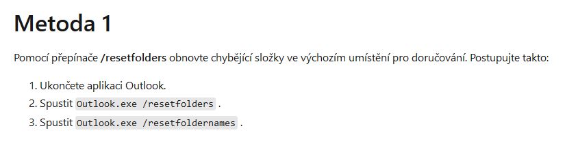 Ma se spustit Outlook.exe s parametrem /resetfoldernames, je to v tom navodu od Microsoftu jasne napsano.