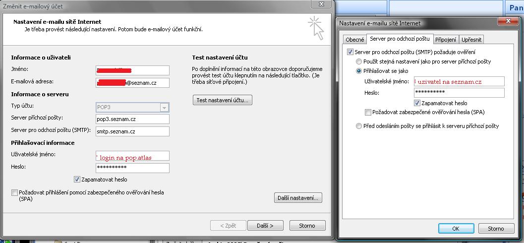 ale když tam dám smtp.seznam.cz, nejde mi to ani odeslat. Když tam nechám to smtp.chello.cz a emailovou adresu přepíšu na tu na seznamu, tak m outlook zase napíše, že to bylo odesláno, ale mail teda nedorazil.
