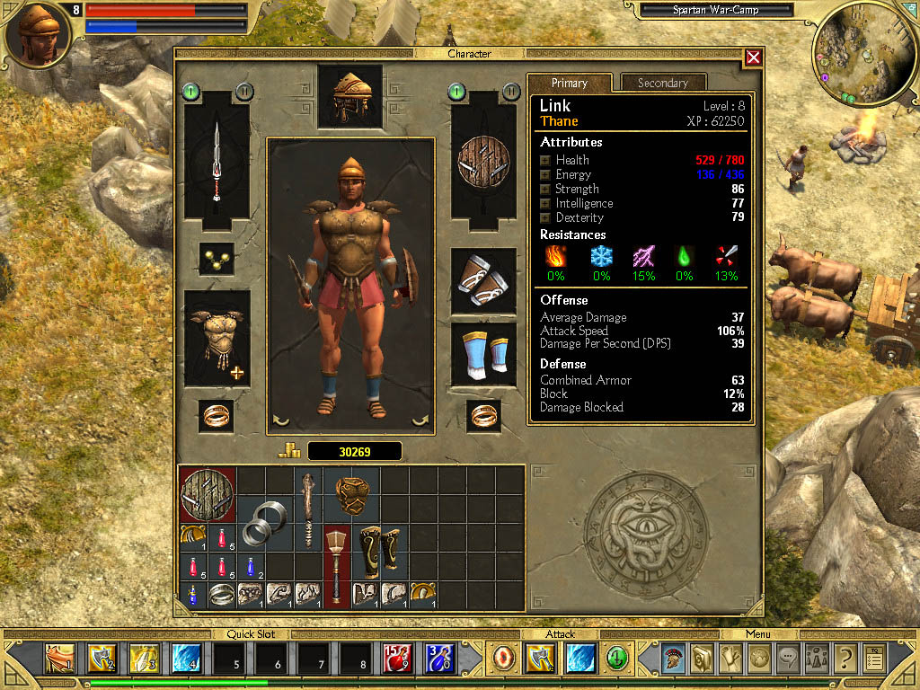 Ahoj koupil sem si hru Titan Quest a mám takový problém. Ve hře se mi neukazují správně věci hlavně v inventáři. Na 1. obrázku je jak to mám a na tom druhém jak to má být. Jinak hra běží v pořádku žádné lagy nebo něco takového.