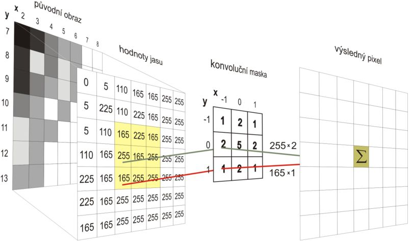 Aliasing se řeší pomocí konvolučních metod zpracování rastrového obrázků. Obraz se převede na matici (podle toho, v jakém barevném modelu pixely jsou, nejčastěji dnes RGB, na obrázku je model černobílý), aplikuje se konvoluční maska (neboli konvoluční jádro - např. vhodným řešením je maska s váženým průměrem okolí daného pixelů) a výsledkem je zpracovaný obraz s (pro nás) "opravenými" pixely. MSAA není nic jiného, než podobný princip opakovaný x-krát (4x/8x). :twisted: