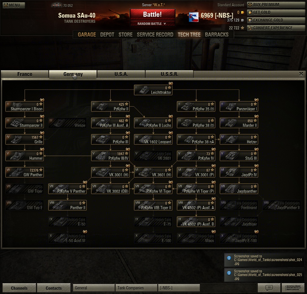 Nemecko: SPG> GW Panther (dal nejedu), Med> E-50 /3001P/, Heavy> E-100, TD> Ferdinand