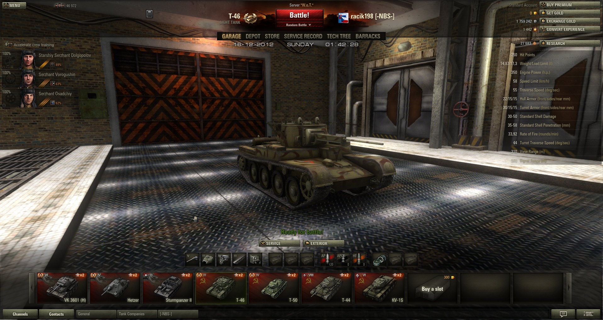 Sám jet nemůžeš, ale taktika v random battle nefunguje. Musíš tedy hrát sám na sebe a zároveň týmově. Jeden tank jich 5 najednou nezabije. Až budeš mít tank vyššího Tieru, už budeš mít trošku lepší vyhlídky na to bejt někde na vrcholu bitevního "food" řetezce.armink píše:Tak stále jsem samozřejmě nováček, jakým systémem hrajete? Jedete na vlastní pěst, držíte se nějaké skupinky...? Často mi přijde že domluvit se s těmi lidmi je naprosto nemožné a když mě to furt hází do bitev kde jsou o 2 lvl vyšší protivníci tak sám nemám šanci. Z mých přátel bohužel nikdo nejezdí s kterým bych mohl nějak alespoň trochu spolupracovat, takže tak. :(