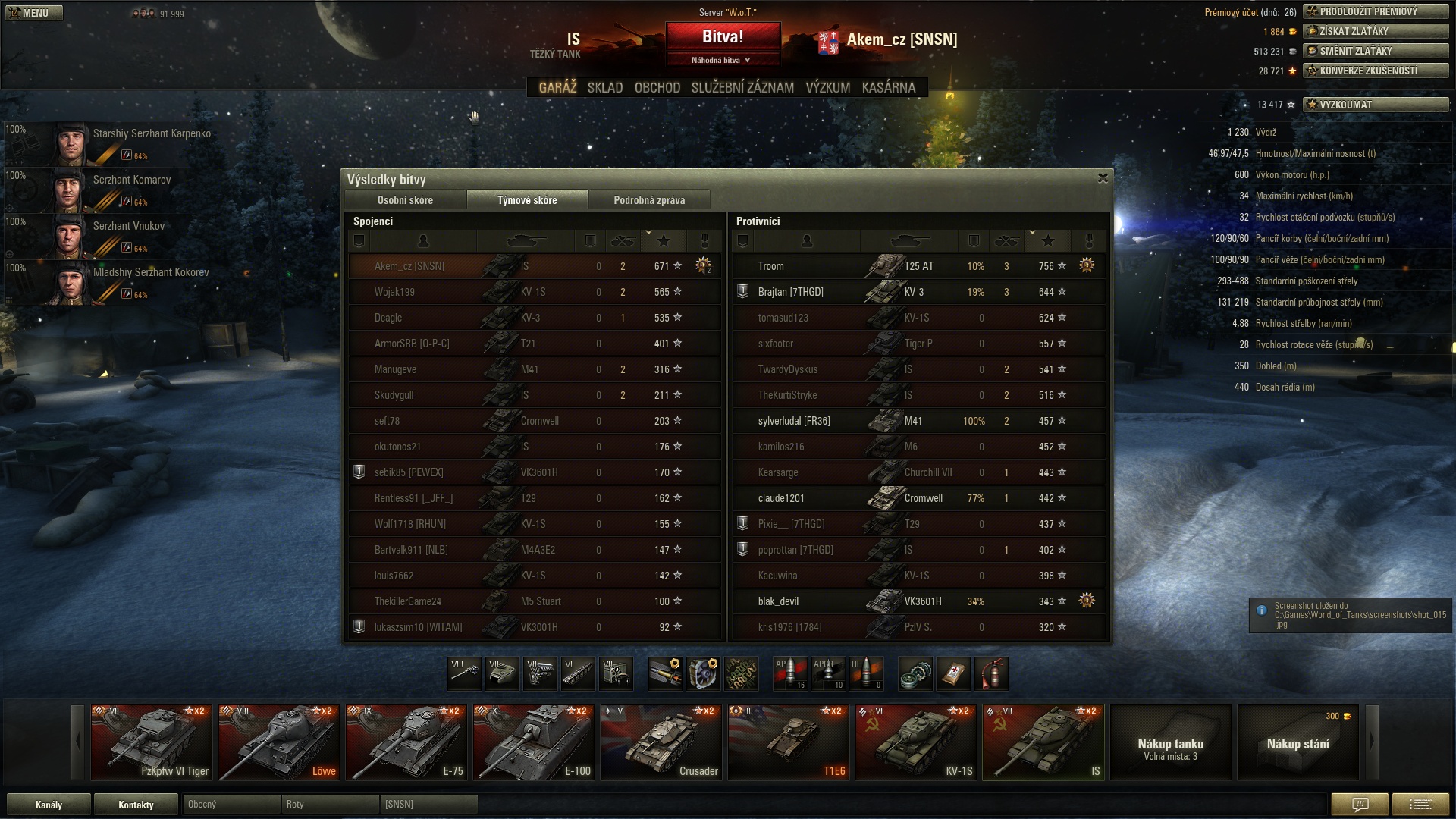 Klan je dobrý proto, že Ti poskytuje jakousi základnu pro hraní. CZ/SK lidi, většinou bejvá někdo online (ano i ve 3-4 ráno), takže je s kým pokecat. Zároveň Ti to poskytuje možnost dostat odpovědi na otázky, který máš. Ať už taktický, technický,.... V neposlední řadě je taky možnost jezdit klanový války (tanky tier 9-10, arty tier 8.armink píše:Btw k čemu je dobrý ten klan? Že bych se případně už i přidal jestli bych mohl.