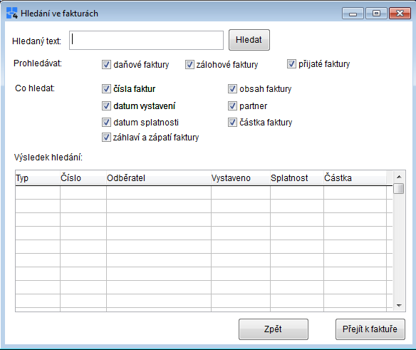 Ahoj, máme program 2HCS - má přímo hledání ve fakturách a můžeš hledat v textu, názvu a čísle. Prostě v celém obsahu faktury. Mají i zkušební verzi, kde si to můžeš vyzkoušet.