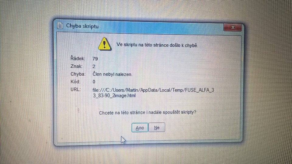 Jeden program, ve kterém jsou v interaktivní formě podávány informace o autech - zobrazují se různé obrázky atd... Neustále vyhazuje hlášku viz příloha. Vygooglovat jsem řešení, že mám v Internet Exploreru zakázat ladění skriptů. To jsem udělal, ale nepomohlo to. Program vlastně ani nic v IE nespouští, takže to by asi ani nemělo pomoci.