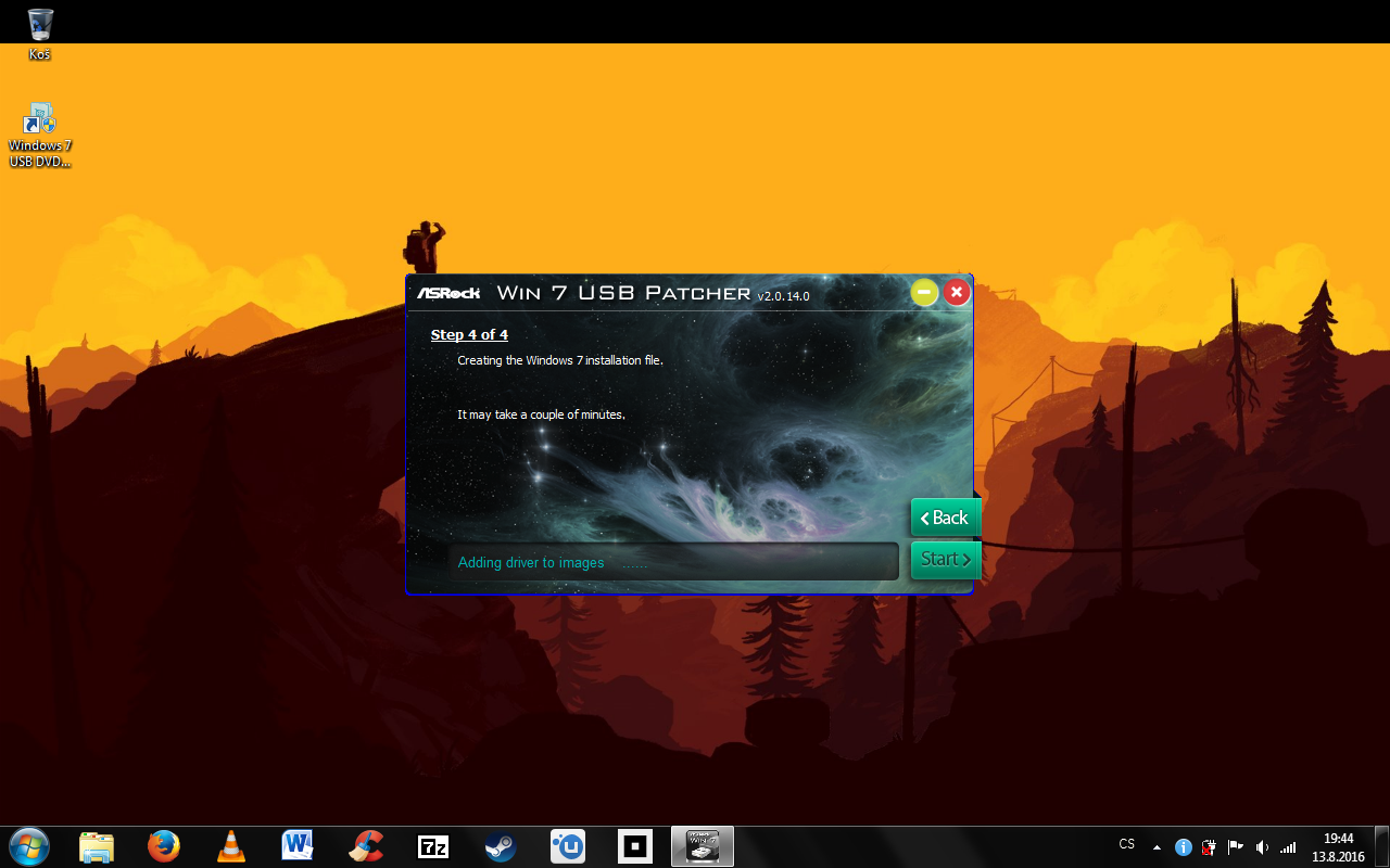 Zdravím, potřeboval bych pomoc s vytvořením boot flashky. Předem říkám že v tomto jsem laik. Mám nový počítač a chtěl jsem do něho naistalovat W7 Pro přes flash, ale "zasekl" jsem se hned na začátku, protože to po chtělo ovladače. Jak jsem se pak dozvěděl, na mojí zákl. desku (ASRock H110-HDV) nejde instalovat z flashky bez "Win7 USB Patcher". Tak jsem to stáhl a nechal istalovat ovladače, ale vždy se mi zaseklo na tomto: