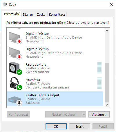 Tak ani tato verze mi to nezobrazilo. Taky jsem zkoušel vše odinstalovat a to taky nepomohlo. To zašedlé nebo zakázané taky ne, na to jsem koukal. Asi to zatím vzdávám. Odinstaloval jsem Realtek a mam ovladač od Microsoft co mi to nainstalovalo. Na tom to funguje tak jak jsem chtěl. Sice na něm zase nemůžu najít žádnej ekvalizer, kterej bych potřeboval k repru, ale to je zatim jedno.