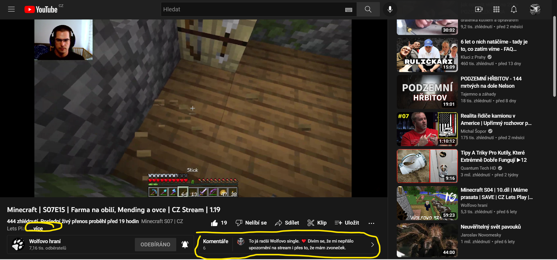 když jsem na youtube přihlášený, nelze mi klikat na komentáře položky označené žlutě.