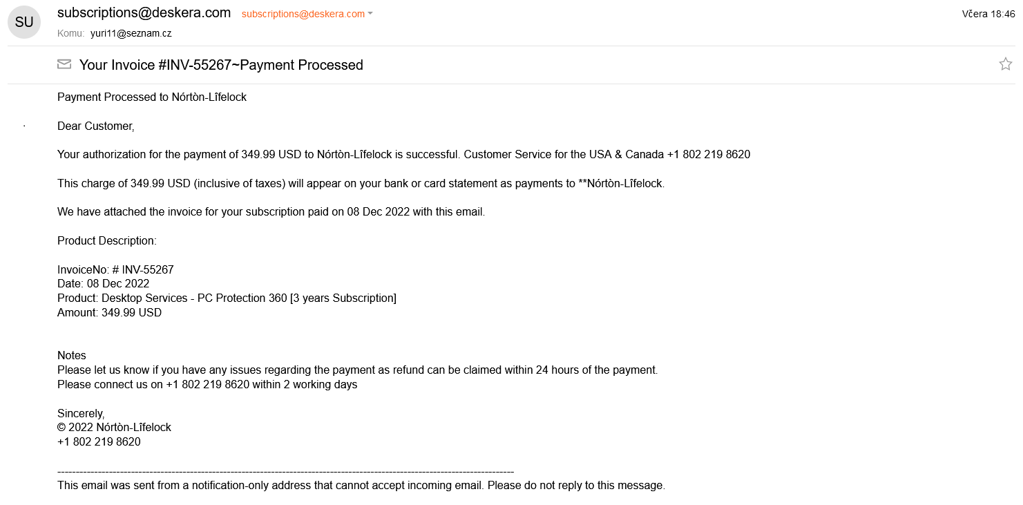 Dobrý den, měl bych na vás prosbu, včera mi došel email na 3 roční předplatné ochrany PC. Já si osobně nic nekupoval. Ani tento antivir nepoužívám. Bude to po mě opravdu chtít zaplatit? Mám to řešit? Děkuji.