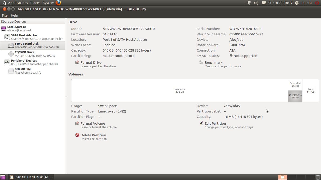 snad jsem to nesformatoval, bylo tam resizing ale hned jsem to zrusil (5sec) ty disky tam nevidim, ale kdyz dam system --> administration--> a disk utility tak tam jde videt celi hdd 640gb (v sata host adapter) a je tam 631gb unkown a 8,7gb free