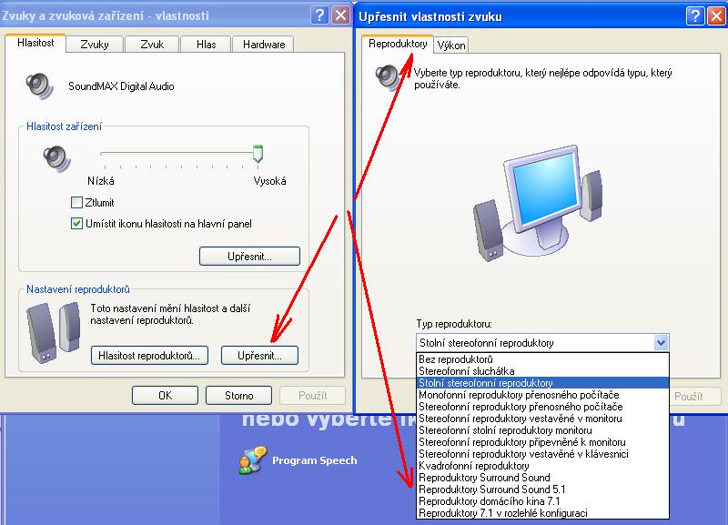 Nevím jaký máš systém - to bys měl uvádět u každého dotazu! Ani jaké reproduktory, takže screen z XP.