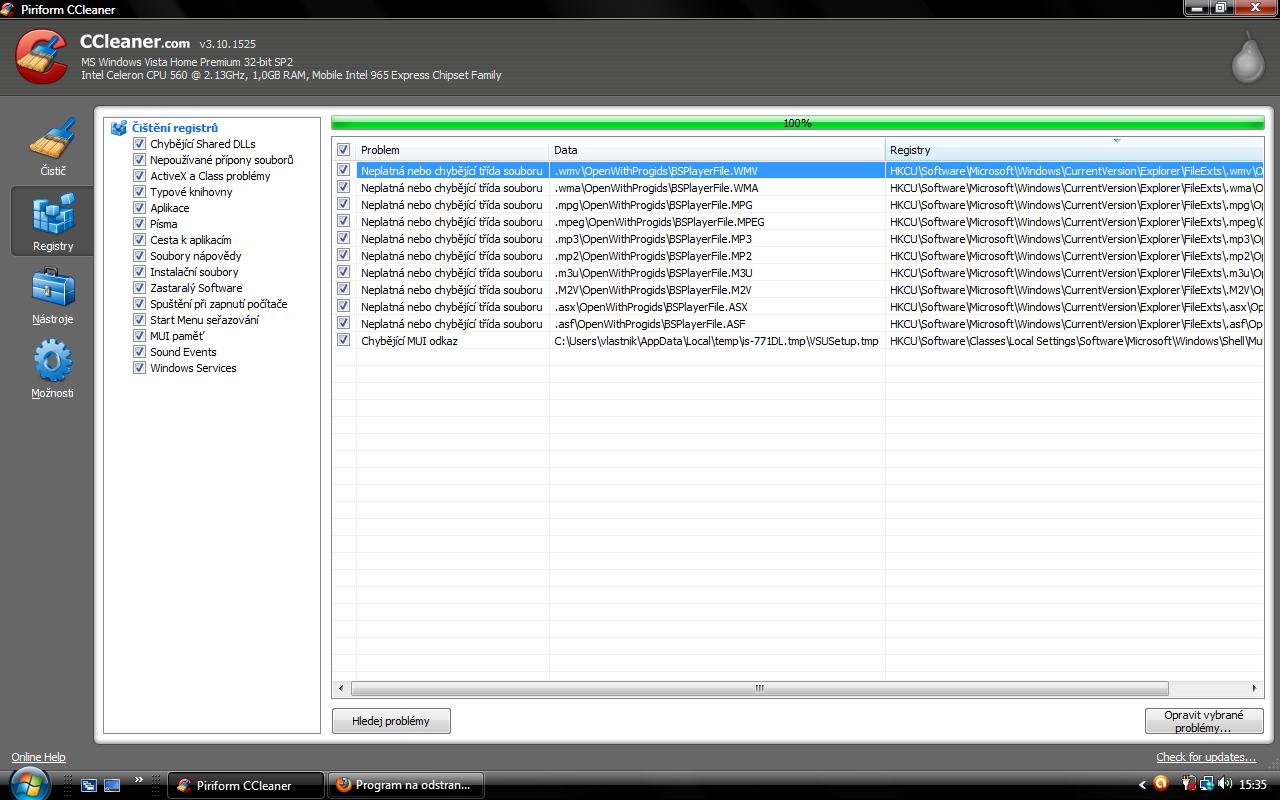 Tvl... Tak teď už fakt nevím! Restartoval jsem počítač a CCleaner našel opět ty samé registry a přitom jsem ty registry smazal!...