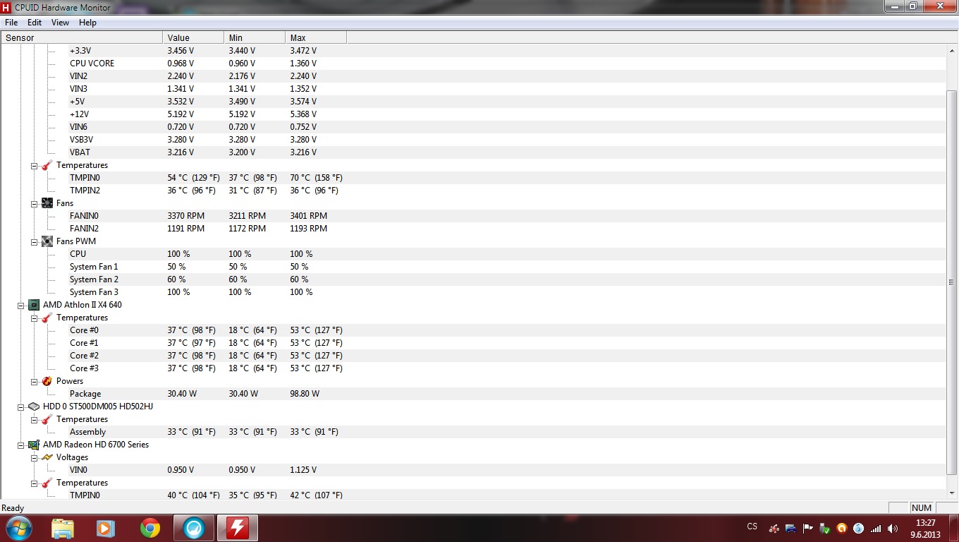 3) Spusť HeavyLoad a Hardware Monitor. V HeavyLoad spusť zátěžový test, po 10 min udělej screen Hardware Monitoru a hoď ho sem.