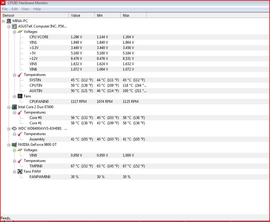 Ty teploty neměr takhle. Stáhni si tenhle program http://www.ocbase.com/index.php/download , zapni ho a dej START (nebo ON teď nevím) a nech ho běžet deset minut a pak sem napiš teploty (obrázek udělej dřív než dáš STOP)