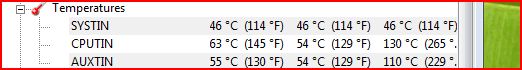 Však on ti někdo odpoví, ale až někdo bude vědět. Ty teploty jsou hrozně vysoký, nevím k čemu to patří, ale asi ke GK. Pokud je tam ventilátor, točí se vůbec?