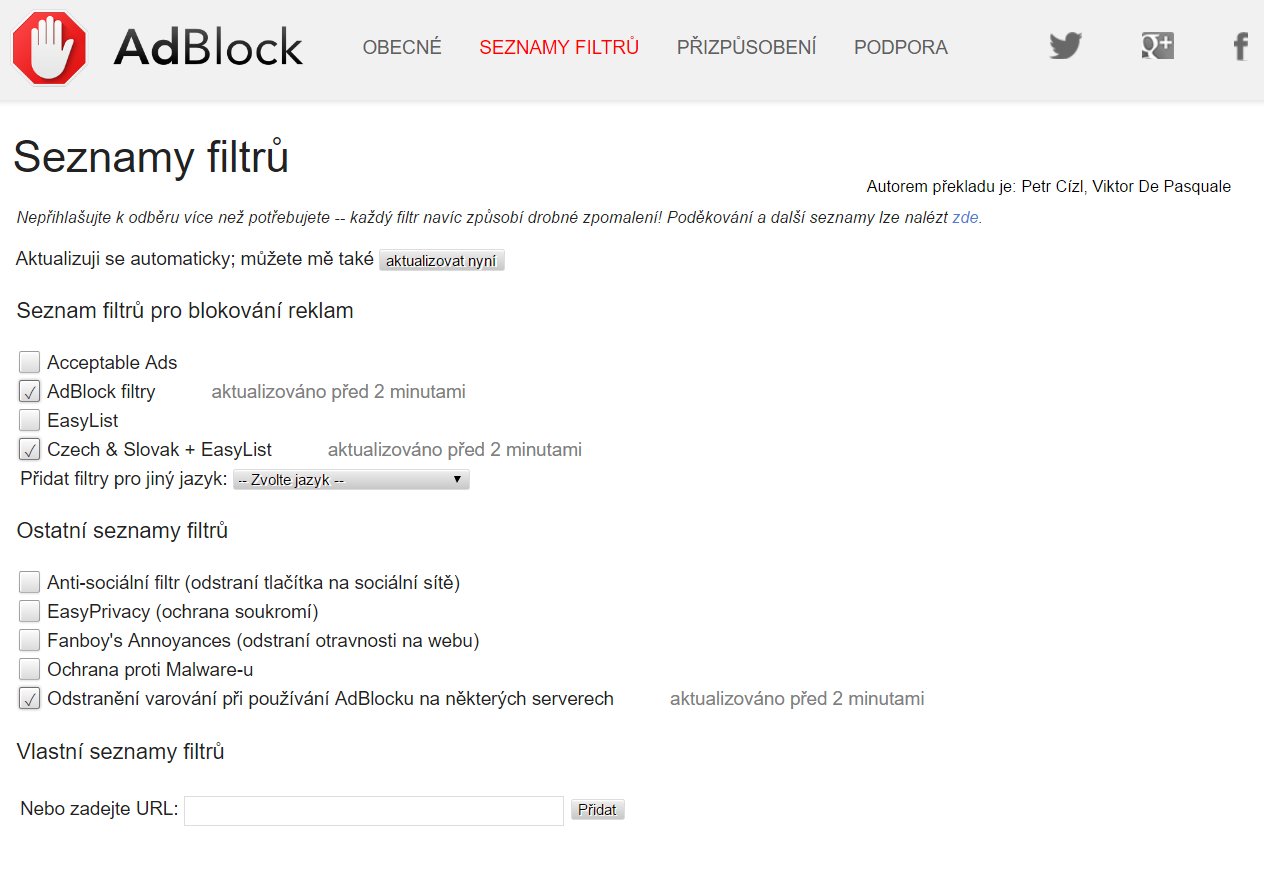 V adblocku využívám filtr s názvem "EasyList Czech and Slovak + Easylist"