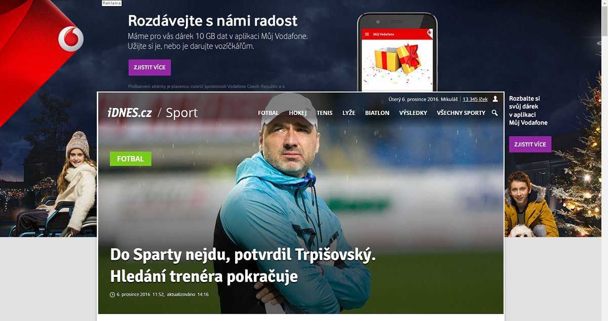 Včera večer jsem zaznamenal, že se na IDNES stránkách například http://sport.idnes.cz/, http://technet.idnes.cz/ na mě opět začala valit reklama a trvá to stále. Na hlavní stránce http://zpravy.idnes.cz/ je vše OK. Asi soudruzi zase něco zkoušejí, měsíce to bylo v pohodě.