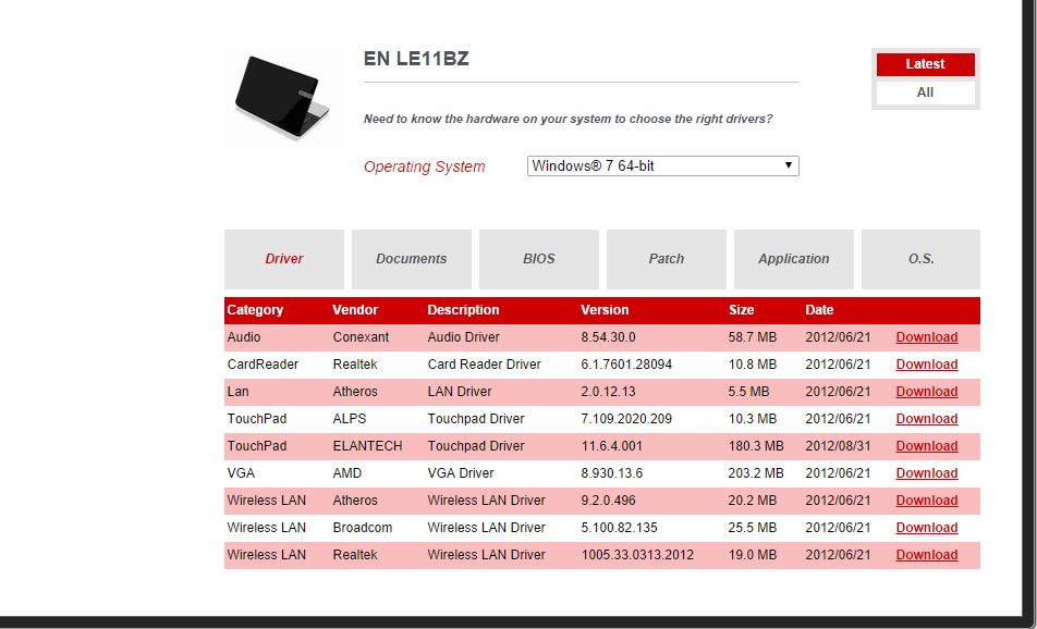 Edit: Tak jsem si až teď všiml ze se v odkazu výše nezobrazuje mnou vyhledaný typ zařízení. Stačí jen nakliknout "Notebook - EasyNote - EN LE11BZ" OS - W7 64-bit