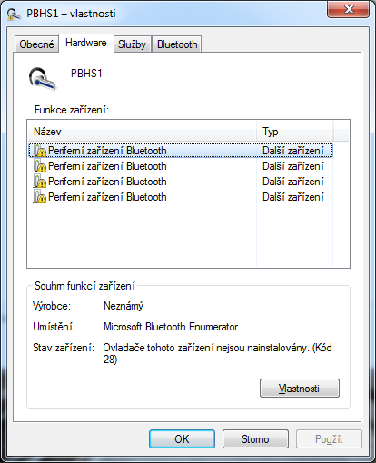 Bluetooth ovladače problém