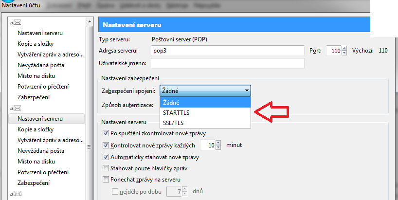 Tak jsem to zkusil přenastavit na "STARTTLS" a pomohlo to vyřešit ten můj problém z odesíláním pošty. Divné mi na tom ale připadá být to, že když jsem to pak zkusil přenastavit zpět na původní hodnotu "Žádné" tak to už také funguje bez problémů i když to předtím s tímto nastavením fungovat nechtělo. Snad už to tak zůstane funkční.