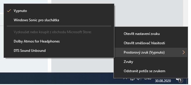 Edit: a pak né klepnout pravým tlačítkem na repráček, ale levým a měl bys tam mít možnost ručně vybrat sluchátka nebo repro.
