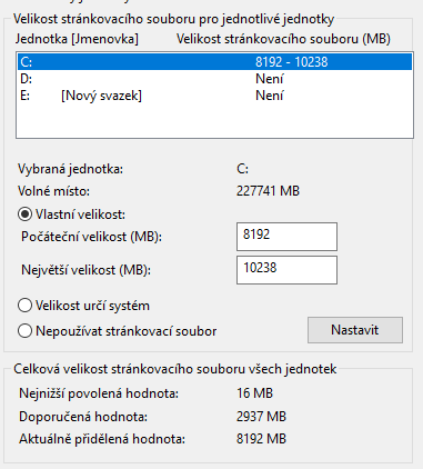 Zkoušel jsem to i s vyplejma appkama. Nepomohlo nic. Ještě mám nastavený stránkovací soubor, ale po přenastavení na defaultní hodnoty žádná změna. Ještě by se slušilo říct, že mi přibyl nový monitor, a 2 disky (500gb WDblue ssd a 1tb 7200 rpm hdd). Oba monitory jsou zapojeny displayportem do GK.