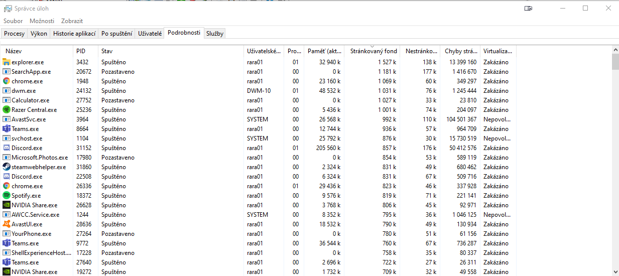 Tedy k problému. Přikládám obrázek základního task manageru, kde je vidět, že i v klidu PC využívá 43 % paměti - celkem disponuji 16 GB RAM. Našel jsem radu, že se mám řídit stránkovanými a nestránkovanými procesy, ale absolutně se v tom nevyznám. Mohl by mi prosím někdo pomoct? Děkuji vám moc.