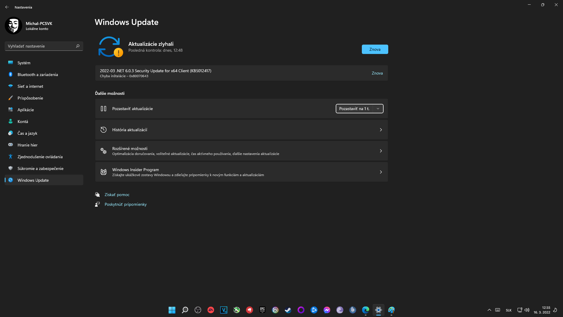 Re: (KB5012417) Nejde mi aktualizovať PC HELP :(