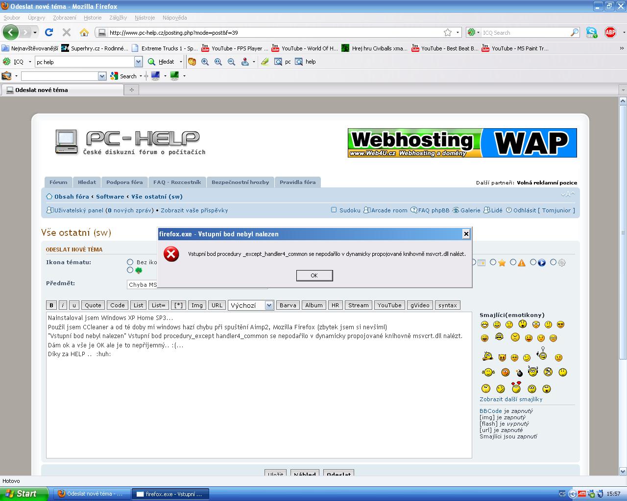 "Vstupní bod nebyl nalezen" Vstupní bod procedury_except handler4_common se nepodařilo v dynamicky propojované knihovně msvcrt.dll nalézt.