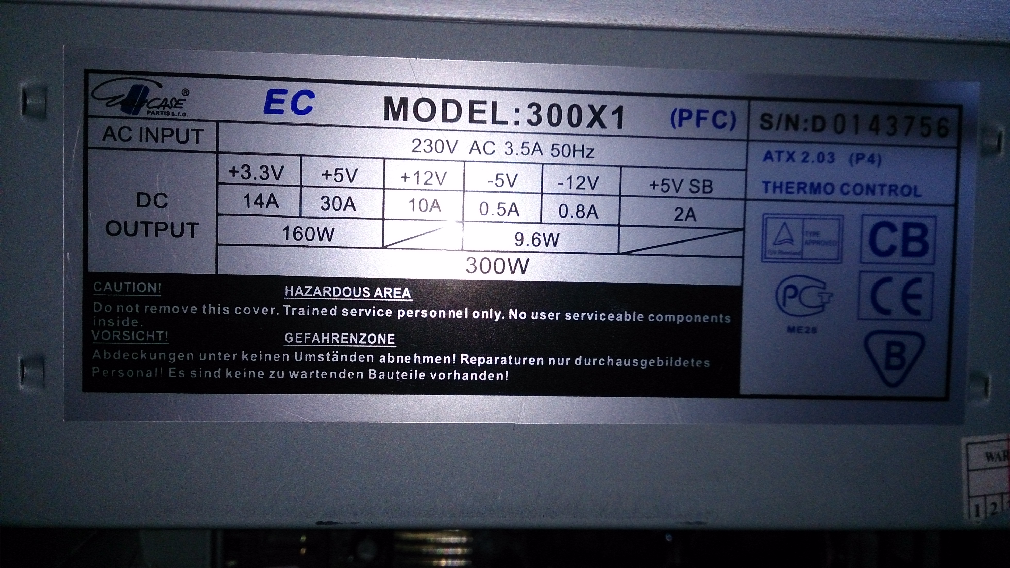 Ten zdroj je dost hrozný sám o sobě, protože není vnitřně osazený a navržený vůbec dobře. Oddělení tristní, vysoké zvlnění a nedokáže na větvích udržet ani deklarované hodnoty. Absence ochran, které zajistí, že v případě zničení vezme s sebou celý nebo větší část hardware do křemíkového nebe. V tom lepším případě, v horším, vyhoří dům. Vůbec se o to nepokoušej, nemá smysl ani probírat vlastnosti (u měřáku spáchá sebevraždu) a jdi koupit 400W+ Seasonic.