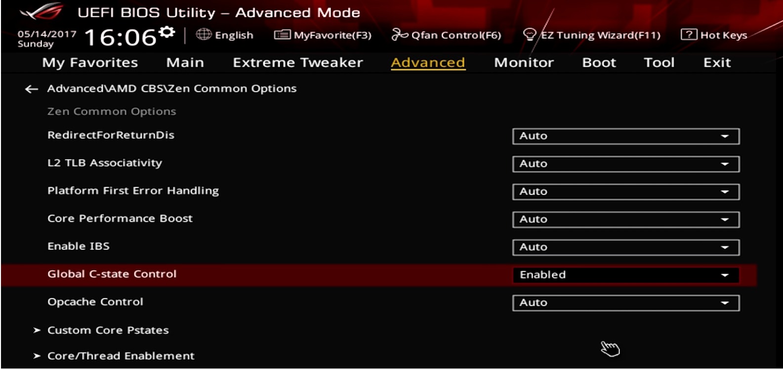 Na ROG CROSSHAIR VI HERO pomohlo nastaviť v biose Global C - state Control na Enabled